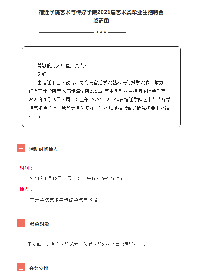 宿迁学院艺术与传媒学院2021届艺术类毕业生校园招聘会