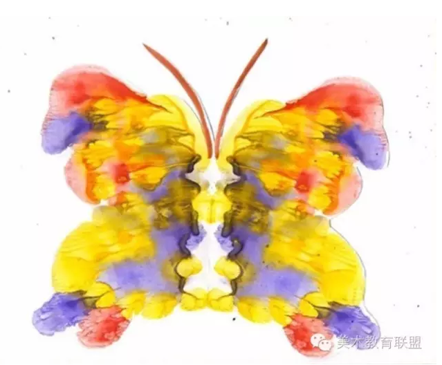 第一种做法:小孩把画笔泡进顏料中,然后在纸上涂出墨渍,并对摺纸张,让墨渍能拓印在另一半纸上。之后摊开纸张,绞尽脑汁去弄懂这幅画到底是人还是物。